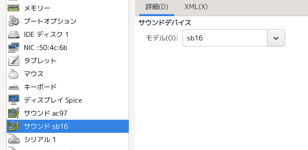 - AdLib(OPL2だけ積んだボード)のエミュレート機能はあるが、virt-managerとかでは設定不可。